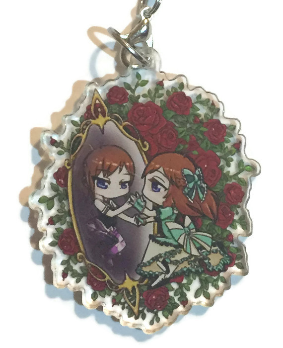 This is for a 2" double-sided clear acrylic charm of Alison/MC are from our upcoming game titled, A Very Important Date. Each side features Alison in her real world work outfit and her Looking Glass outfit.