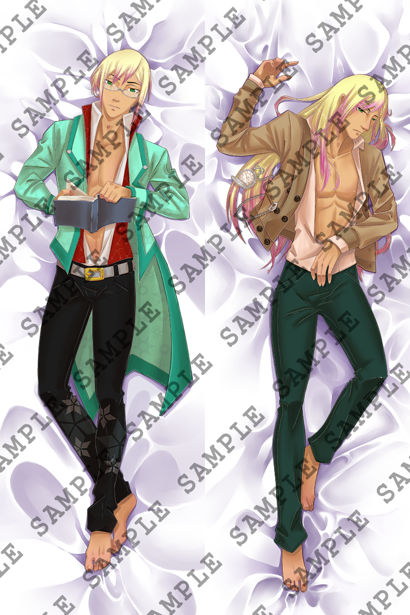 This is a two sided dakimakura (body pillowcase) of Emil Vasile from our upcoming game titled, “A Very Important Date.” Each side has a different image, one side having Emil in his work clothes and the other featuring Emil in his casualwear, both sides with unbuttoned shirts.